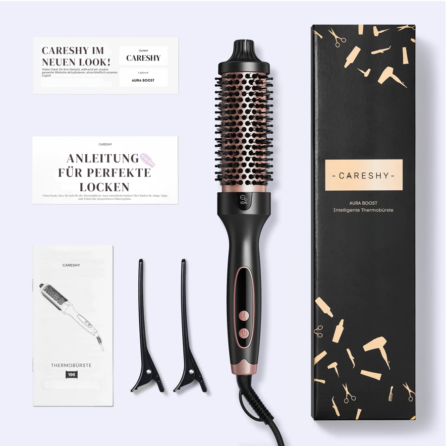 Entdecken Sie AURA Boost, unsere intelligente WĂ€rmbĂŒrste, bei der Innovation auf Eleganz trifft.