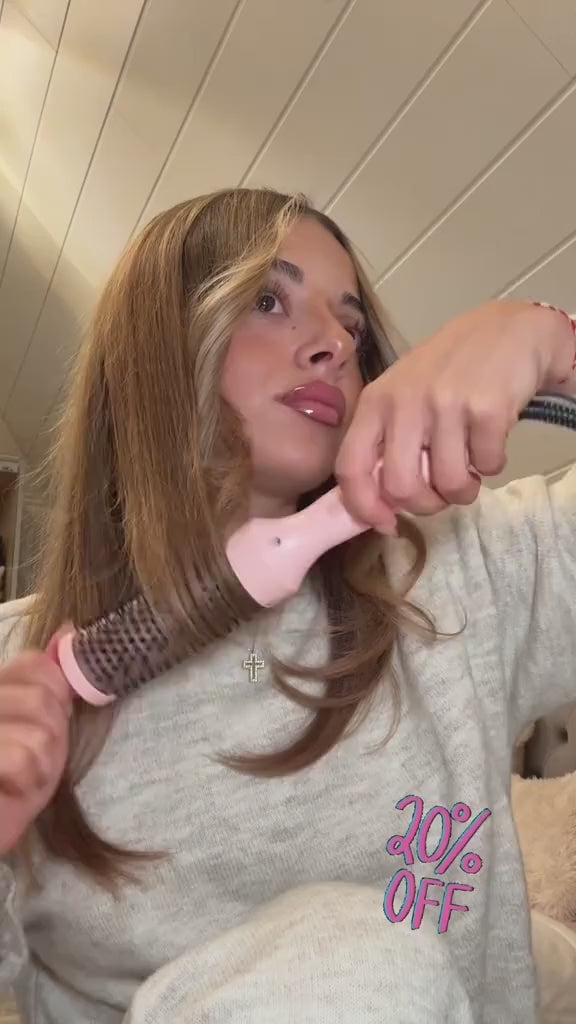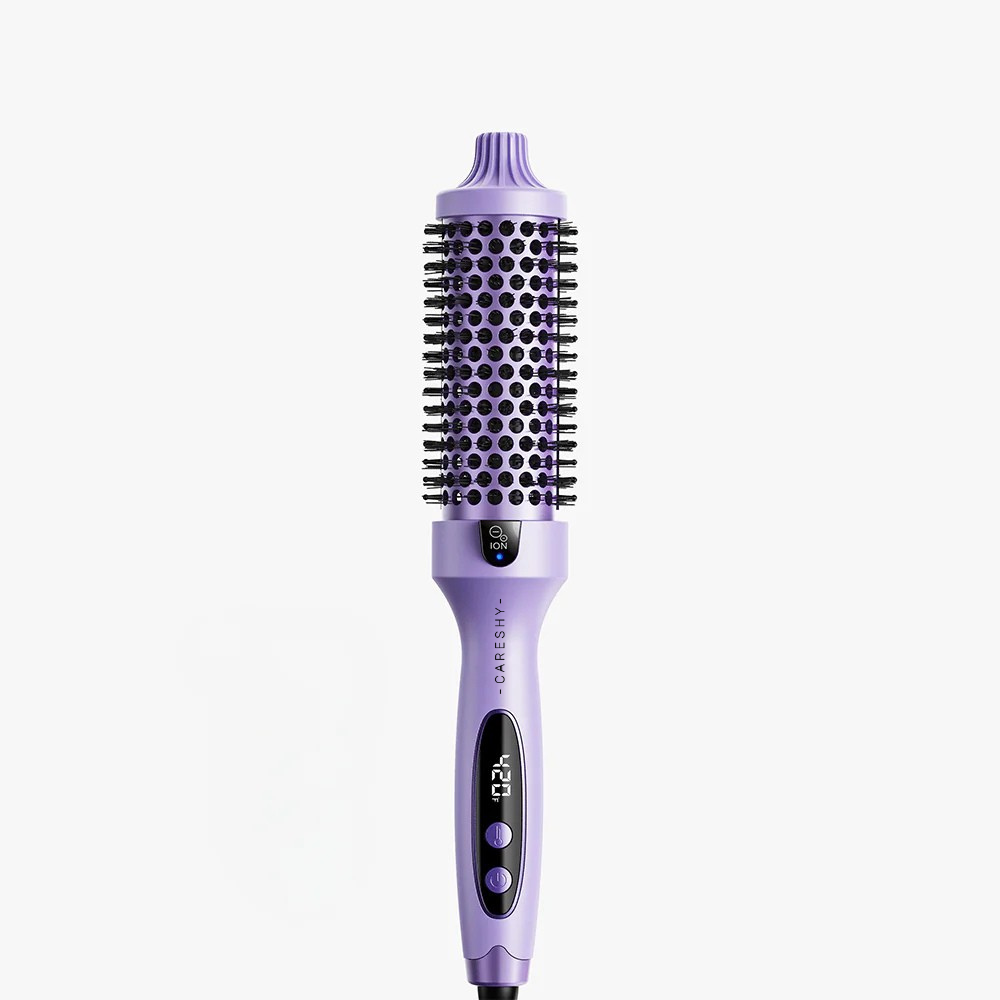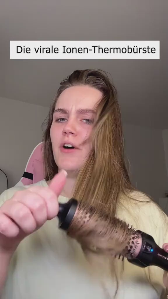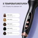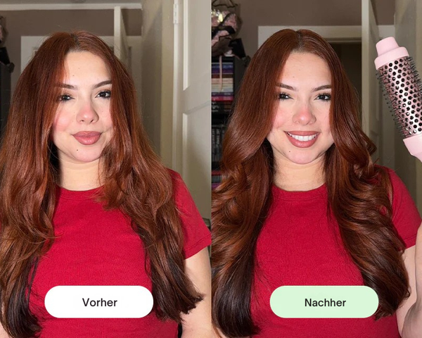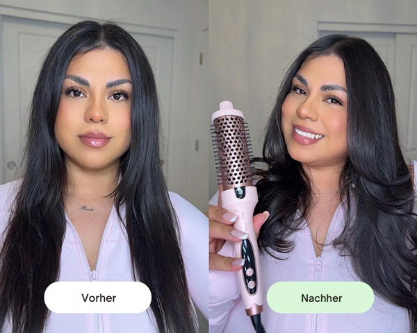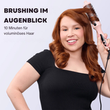 Ziehen Sie die BĂŒrste gerade nach unten, um einen glatten Look zu erzielen, oder wickeln Sie die Spitzen ein, um Locken zu formen â dann loslassen fĂŒr ein perfektes Finish.
